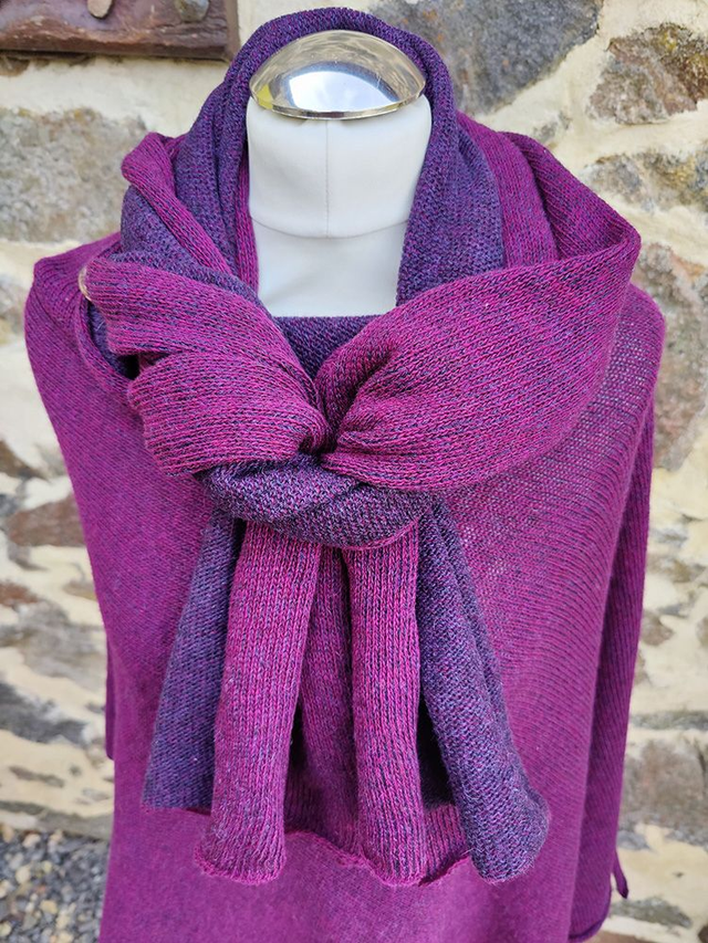 Couleurs lambswool two colour scarf. Cersie and Purple reversible scarf. Scarves. Accessories.