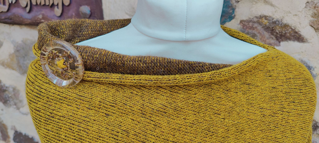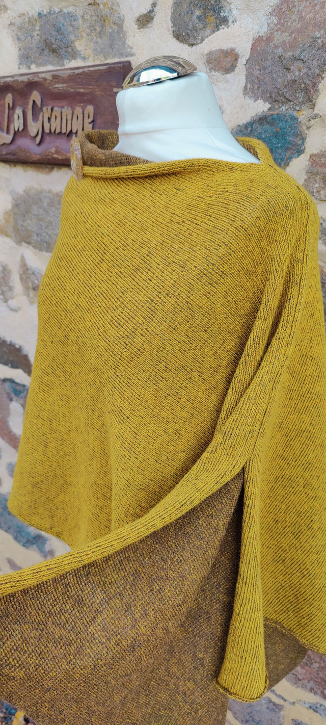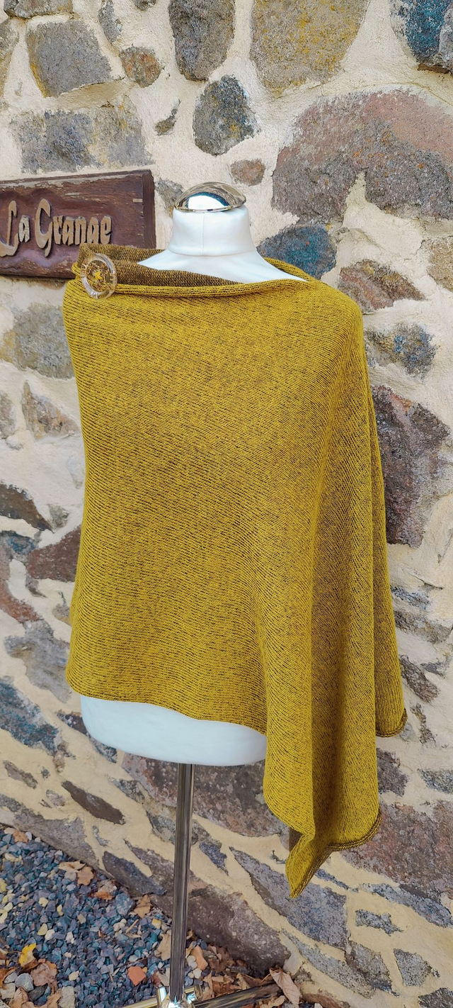Couleurs poncho is knitted in a beautiful lightweight lambswool with a coloured fleck running through it, giving it a depth of colour. With a contrasting colour on the inside, this poncho looks just as good on the inside as the outside. Decorated with one of my handcrafted button's made using resin and filled with heather. Each button is individually hand made making each one unique and may vary slightly from the photo.