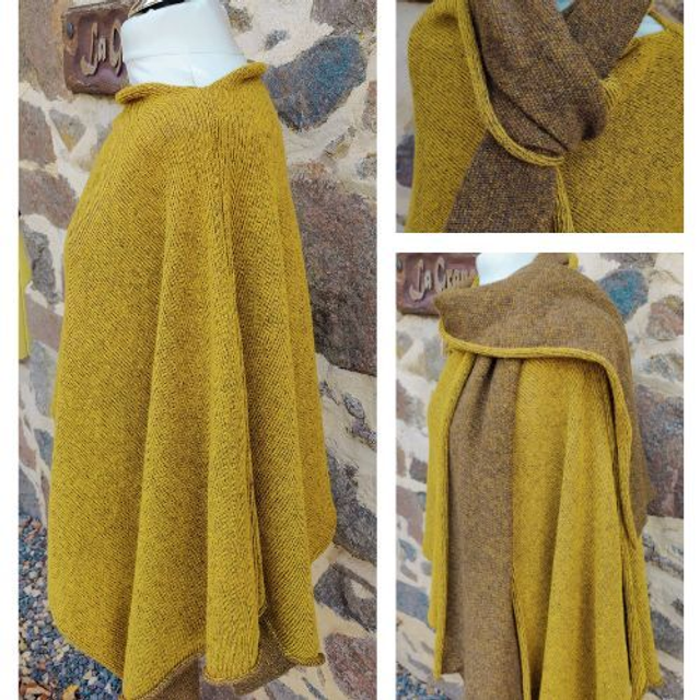 Ponchos are so comfortable and versatile a must for your wardrobe. This unique poncho was designed and knitted by Elizabeth Larsen Knitwear.