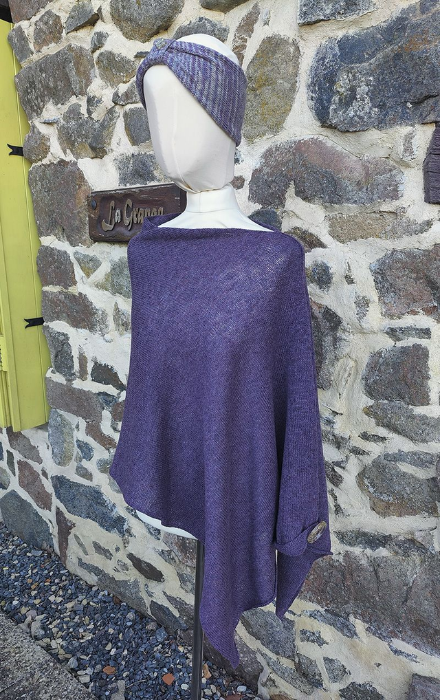 Heather striped button headband. Womens bandeau. Knitted headband. Purple ear warmers. Womens knitted accessories.