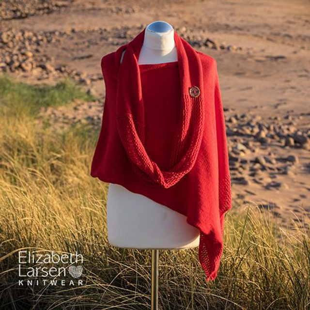 This design was inspired by the colours and textures of all the wonderfull stuff you find on the seashore, from flaking brightly painted fishing boats, lobster pots, shells to pebbles. The colours of nature mingling in with the remnants of human habitation. Designed and by knitted by Elizabeth Larsen Knitwear.
