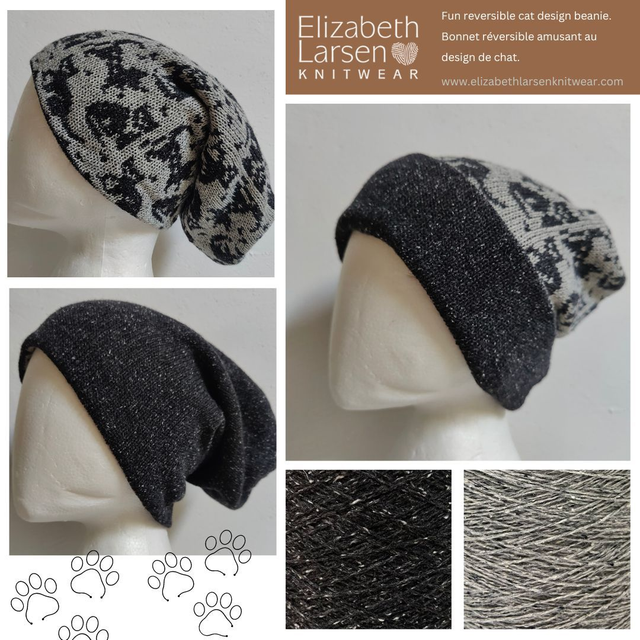 Fun Cats design reversible beanie in a tweed effect yarn that's so tactile and soft against the skin. A versatile hat that can be worn many different ways, cat design or plain, or turn up a hem and have the two contrasting colours showing, the choice is yours.