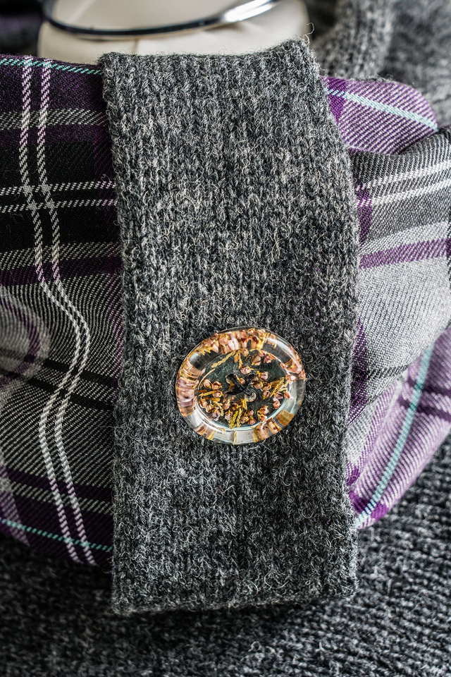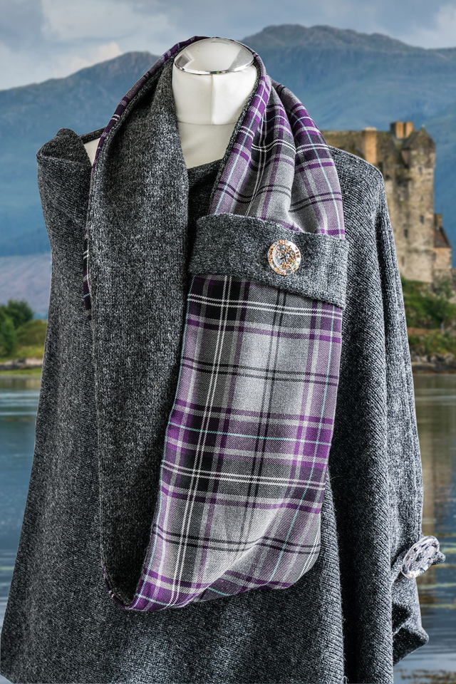 Inspired by the traditional cloth of Scotland, tartan. This infinity scarf is part of my Heritage Collection. Can be worn single or doubled over and knitted with a super soft lambswool spun in Scotland, lined with tartan and decorated with one of my handcrafted buttons filled with heather.